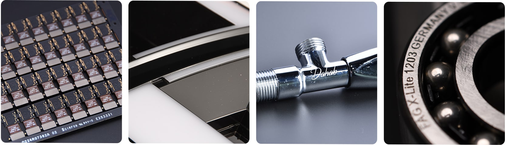 铭牌、金属/塑料配件、五金、首饰、金属喷漆喷塑面、石墨烯、易拉罐、奶粉罐等